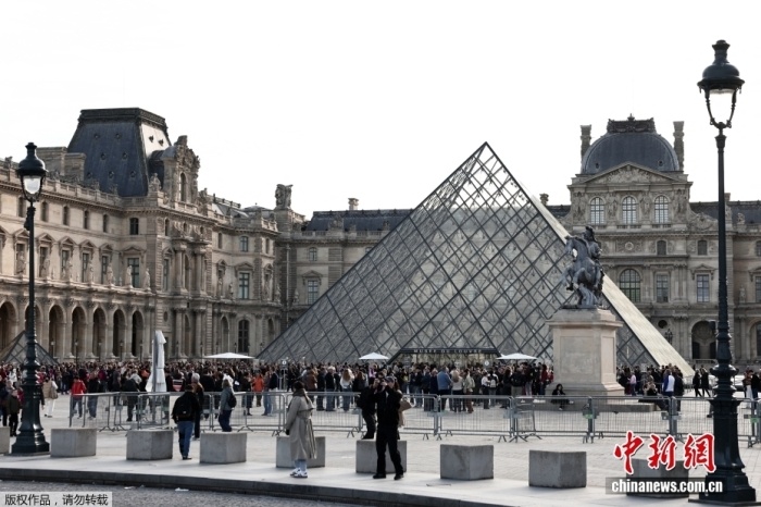 中新社10月30日电 据路透社报道,第三名与卢浮宫博物馆抢劫案有关的嫌疑人于当地时间29日晚被捕。当地时间10月22日,抢劫案发生三天后,法国卢浮宫博物馆重新向游客开放。照片显示游客在卢浮宫前排队。据报道,嫌疑人当晚在法国巴黎地区被捕,疑似案发时在场。当地时间10月19日上午,在收藏法国王室珠宝的卢浮宫博物馆开放期间,四名蒙面窃贼从阿波罗博物馆偷走了珍贵的珠宝。巴黎检察官办公室当地时间29日宣布,事发后被捕的两名男子“部分承认”参与了抢劫案,但被盗珠宝尚未追回。